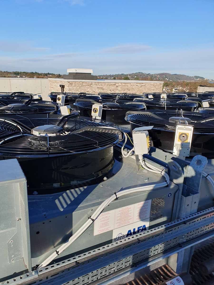 Unitherm Heating Systems supplied the heat pump solution for Shanganagh Castle: a Danish custom manufactured Solid Energy 550 kW air-to-water heat pump which feeds into a communal heating system for all four blocks. The system is backed up by two 750 kW gas boilers.