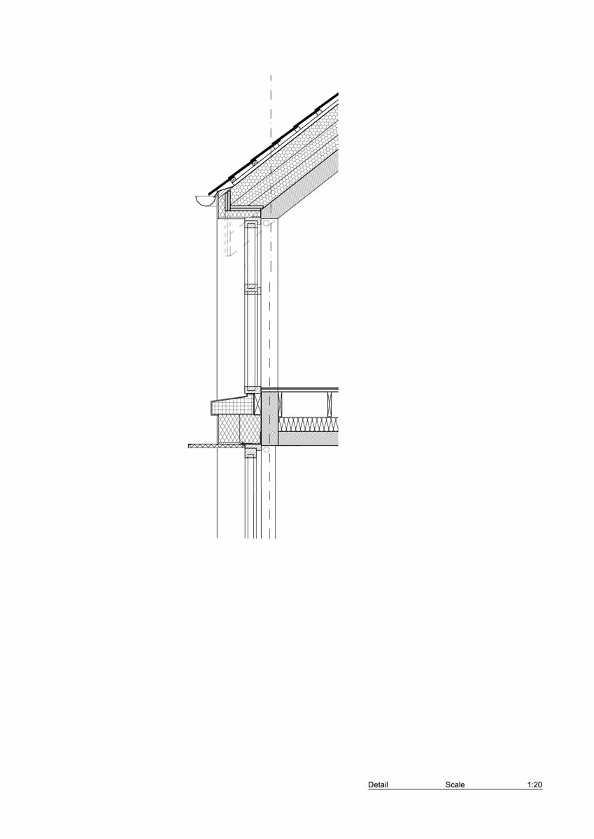 Flat roof: Fibreglass on average thickness 200 mm Xtratherm Sloped PIR (thermal conductivity 0.022 W/mK) on liquid applied vapour barrier on Pro Clima Solitex Adhero airtightness on 120 mm CLT. U-Value: 0.098 W/m²K.