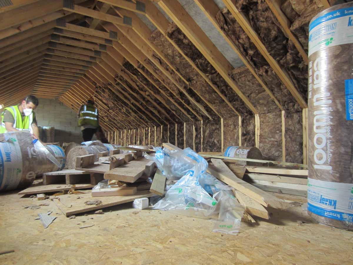 Knauf Earthwool insulation being installed between rafters;