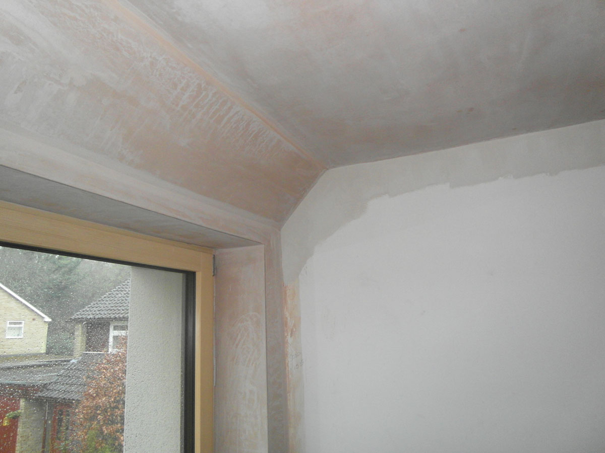 Because the roof was not in need of replacement, it was not cost-effective to take it apart to get a full thickness of insulation right over the top of the walls. Instead, the internal eaves were treated with an insulated cornice, in order to minimise cold bridging.