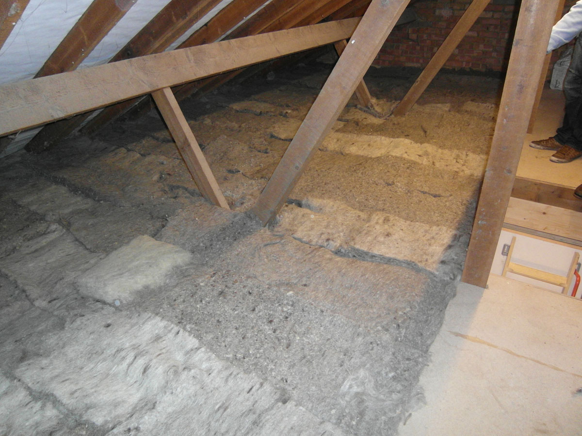 The roof was in good condition but the roof ventilation was upgraded, the existing loft insulation completely removed, and 300mm of Warmcel laid with an extra layer of cross laid 100mm Thermafleece sheeps wool on top.