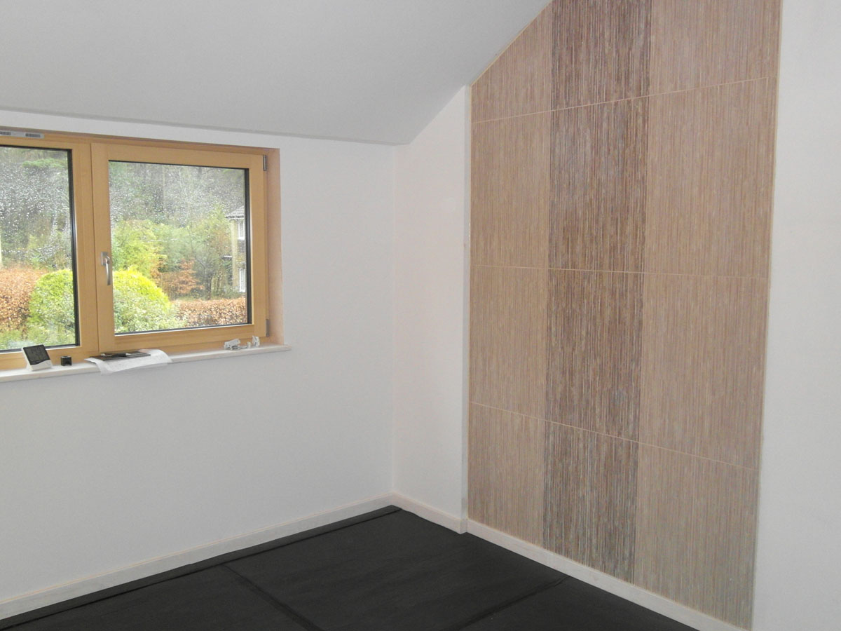 Green materials: Steico wood fibre insulation used for external wall insulation system, directly rendered using breathable Lime Green render system. Flexible wood fibre insulation used between timbers in walls and roofs. Sheeps wool insulation used in loft. No tantalised timber allowed inside of the vapour control layer due to risk of off-gassing. Environmentally friendly paints also used.